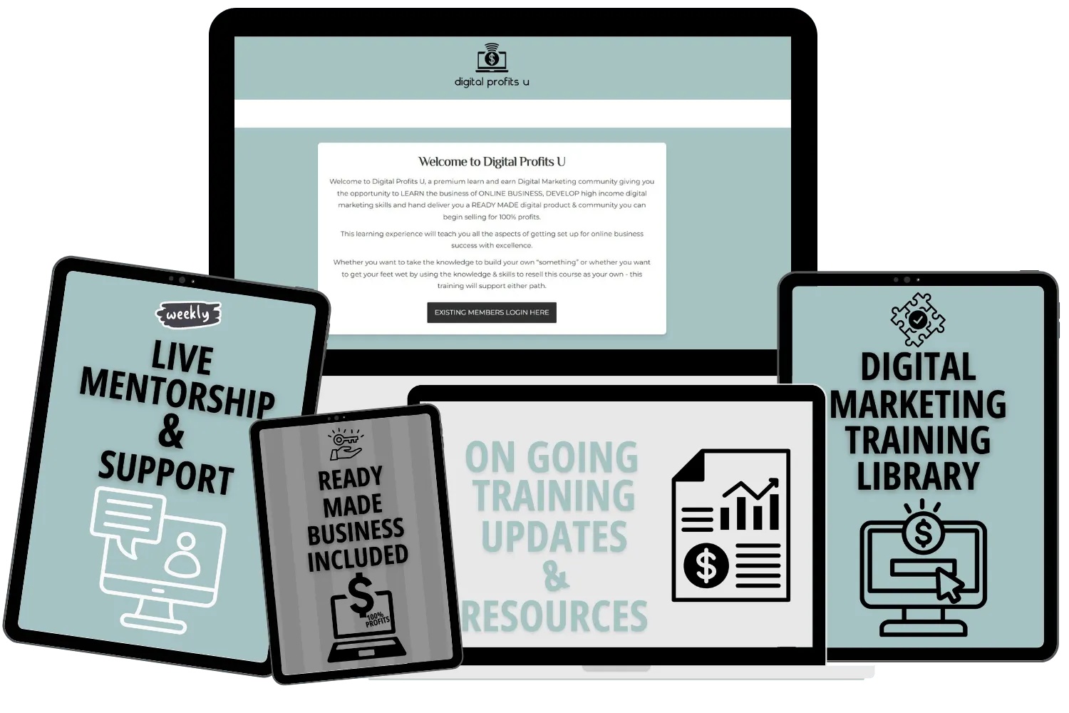 If your goal is to master the art of online business while creating a business you can own, control, and grow on your terms, you’ve come to the right place! Beginner friendly digital marketing course + community to help you get all set up to make money online. Digital Profits U complete with live mentorship + master resell rights!